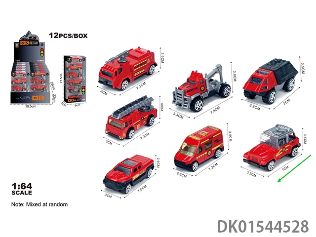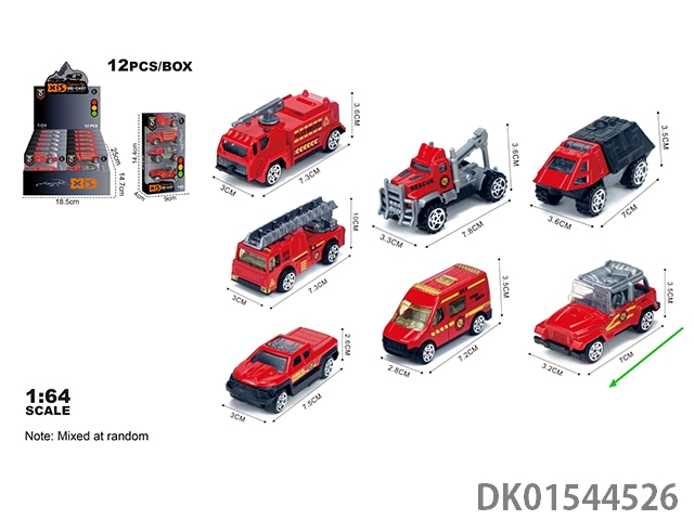 英文1:64压铸锌合金消防6只装车模 12盒/展示盒(7款混装)