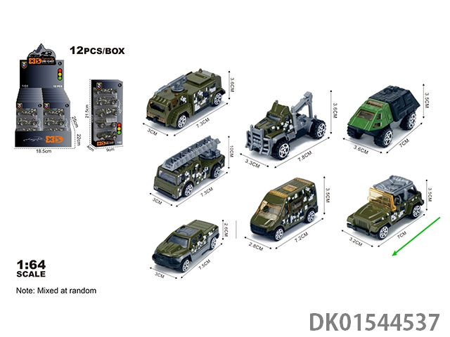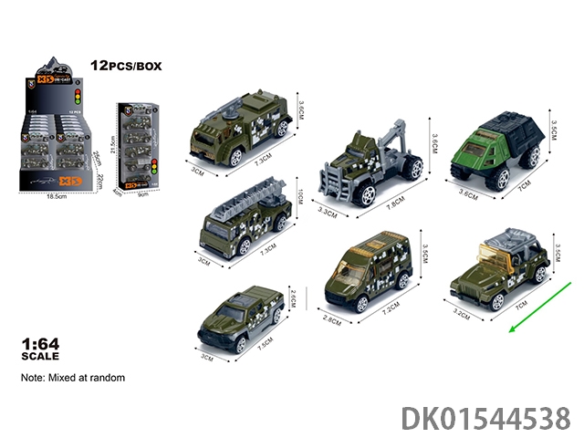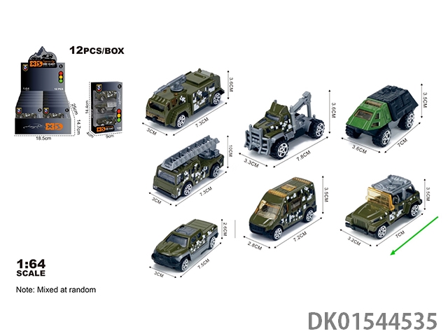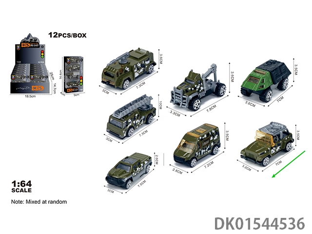 英文1:64压铸锌合金军事3只装车模 12盒/展示盒(7款混装)