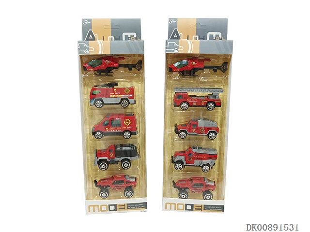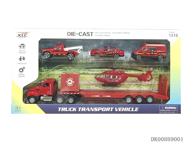 合金拖头车组合配3只消防车1只直升机