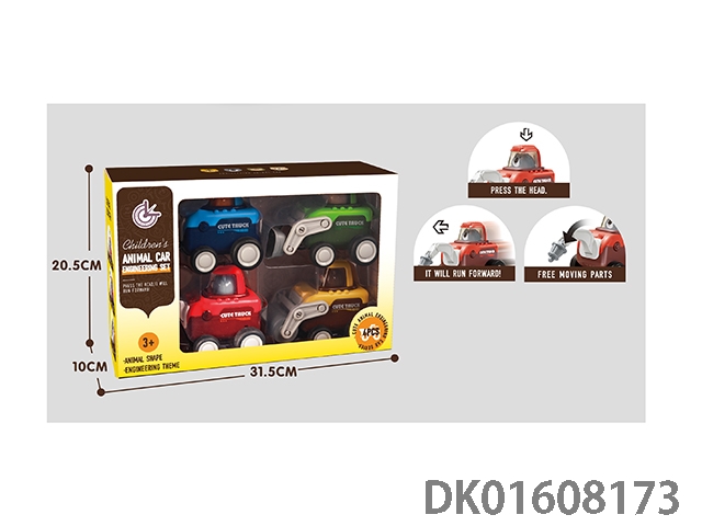 四款混装按压动物工程车4PC