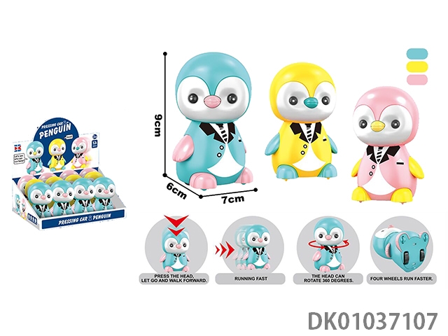 英文按压企鹅红/黄/蓝混装12PCS
