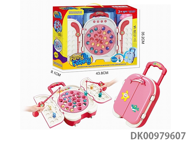 卡通拉杆箱电动钓鱼盘玩具(粉色)