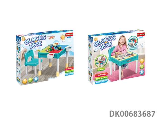 积木桌(桌子+2椅子+围边+小颗粒面板)