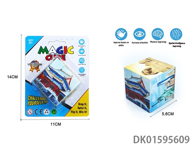 三阶5.6魔方(白改料+印UV建筑图案)