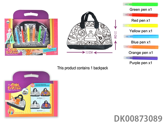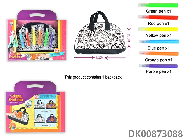 首饰珠宝涂鸦可水洗儿童手提包手挎包(6色笔)反复使用