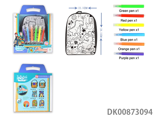 恐龙世界涂鸦可水洗儿童背包(6色笔)反复使用