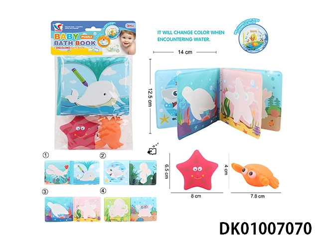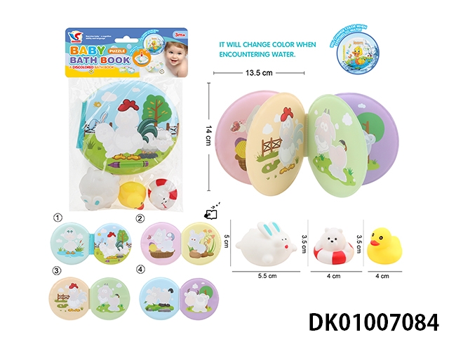 益智科教EVA洗澡变色学习书(内含BB叫)配喷水塘胶小动物,BB响塘胶小动物