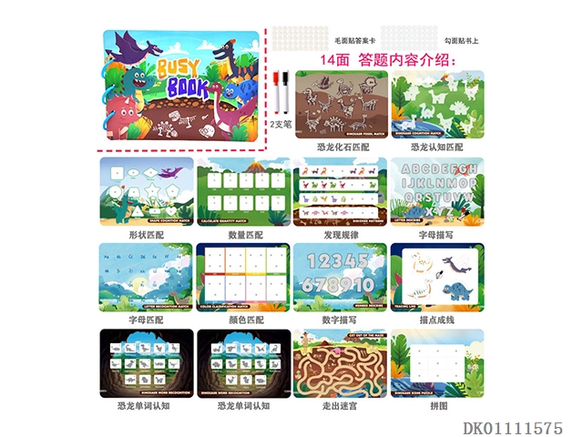 二合一笔控训练魔术贴安静忙碌书-恐龙