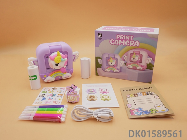 紫色独角兽儿童打印照相机/儿童打印相机/儿童拍立得/带APP(可兼容黑白/彩色打印两种模式。 彩色打印纸需另外订购)