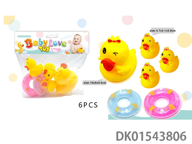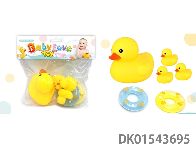 咪眼鸭子女搪胶玩具 BB哨搪胶鸭子一带三只 浴室玩具