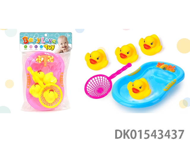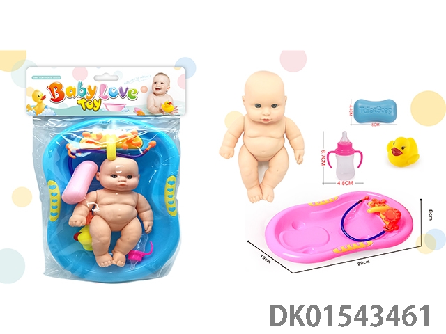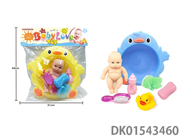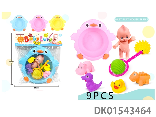 搪胶公仔浴盆玩具(浴盆,大号公仔,肥皂,奶瓶,搪胶鸭子)