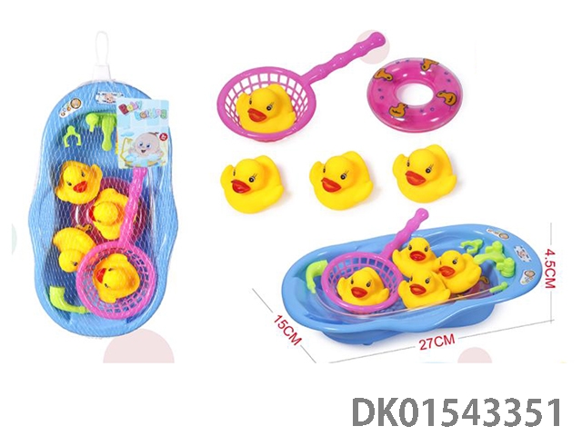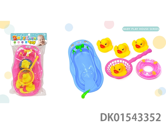 BB叫搪胶鸭浴盆(4只搪胶鸭带BB哨,鱼捞,游泳圈)