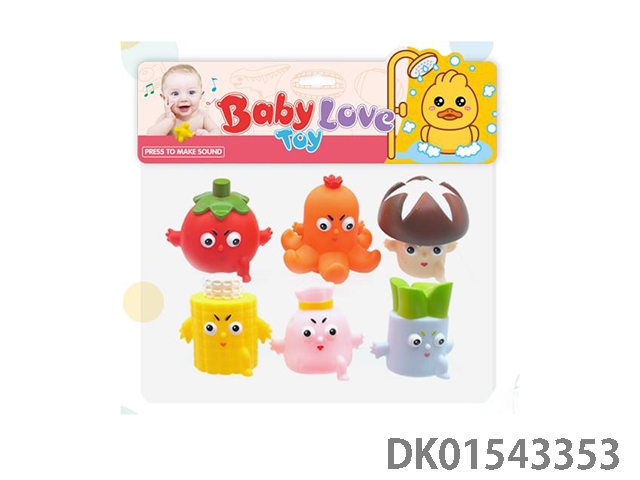 环保搪胶蔬菜食物BB哨玩具6PCS