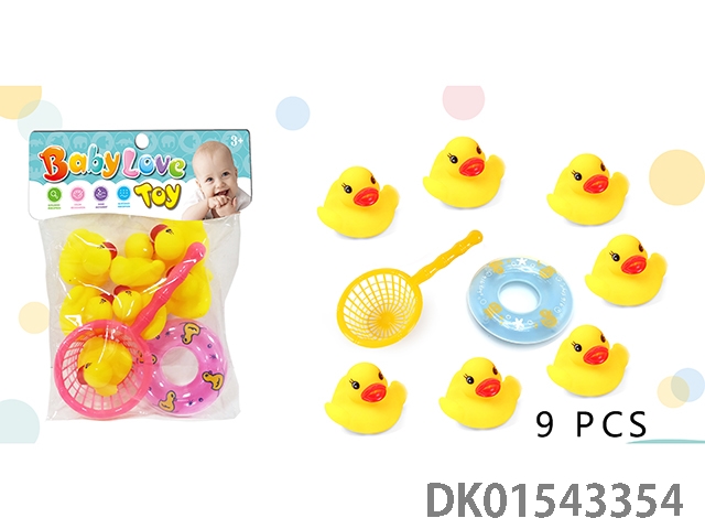9只搪胶鸭子带BB哨玩具 戏水浴室玩具