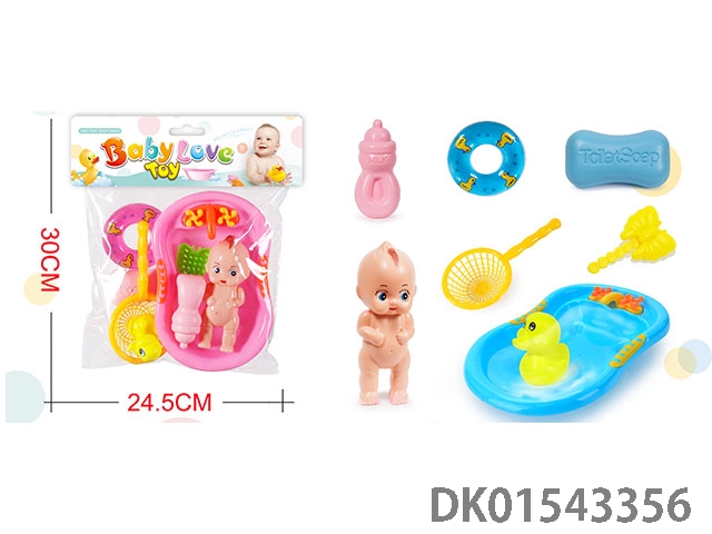 公仔浴盆戏水玩具(浴盆,公仔,梳,肥皂,奶瓶,游泳圈,鸭,渔捞)