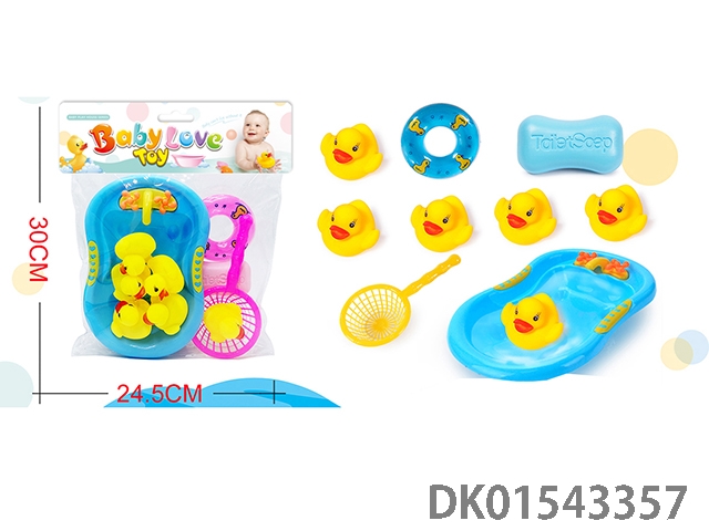 搪胶鸭子戏水套装,BB叫鸭子浴室玩具