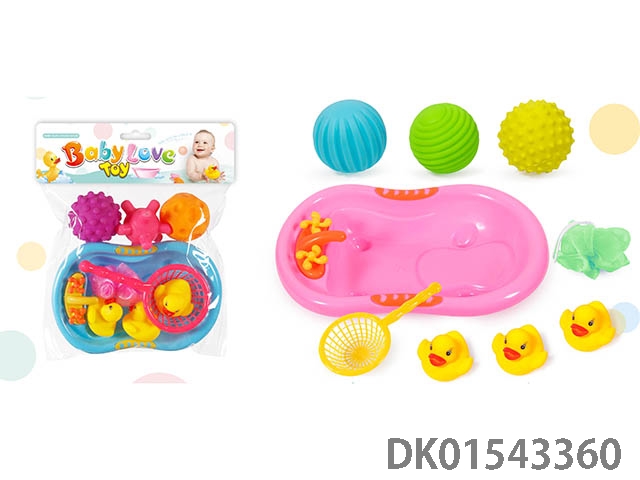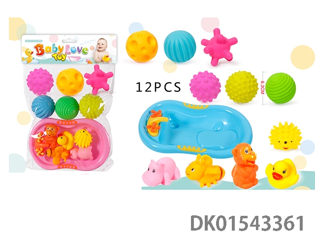 搪胶BB叫动物玩具浴盆套装 按摩捏捏球戏水浴室玩具