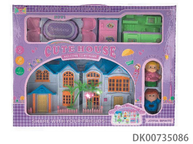 带门角灯光别墅配男女公仔