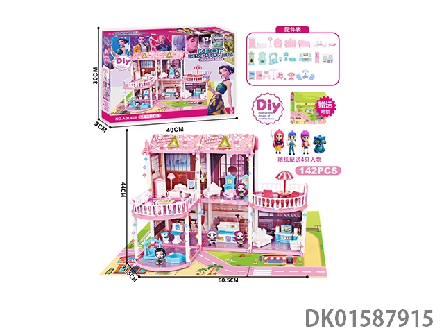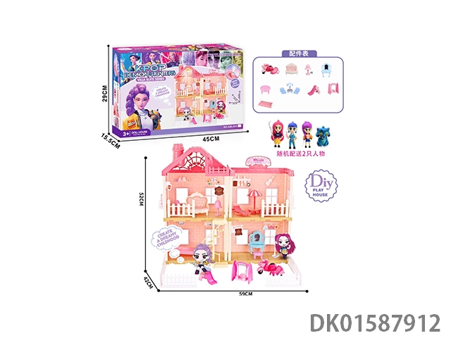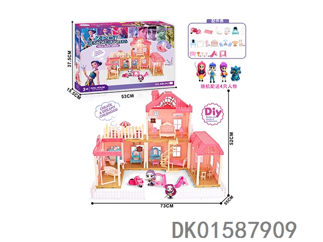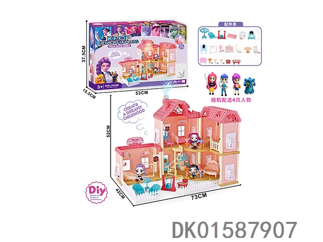 环保芭比卡通别墅套装带灯光音乐(门铃包3粒AG13,七彩吊灯包3粒AG13)