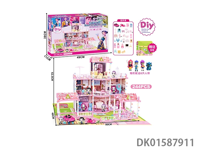 DIY过家家别墅库洛米主题7房 DIY别墅拼装别墅小别墅屋DIY房子别墅玩具别墅套装