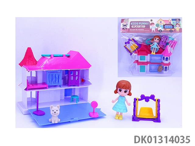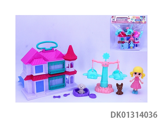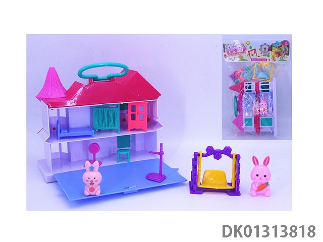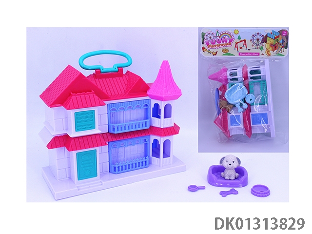 女孩手提翻盖别墅套装(小狗秋千家具)