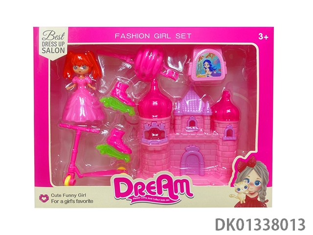 小公主+城堡+滑板车+单轮鞋+帽子+书包