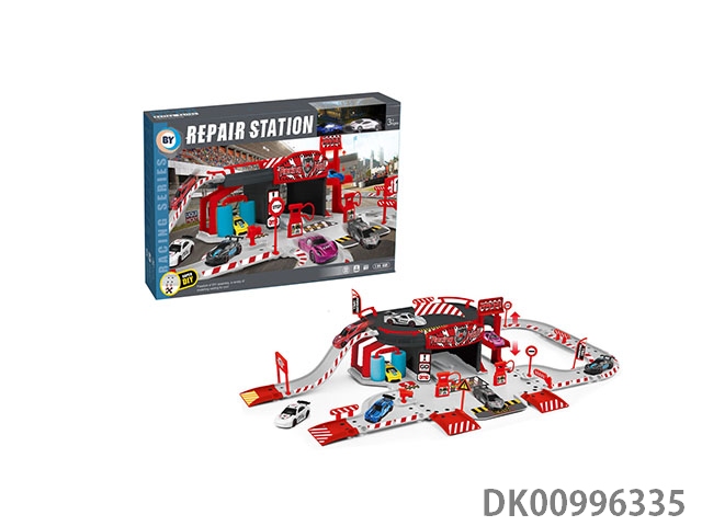 合金赛车停车场修理厂套装(配2只合金车)