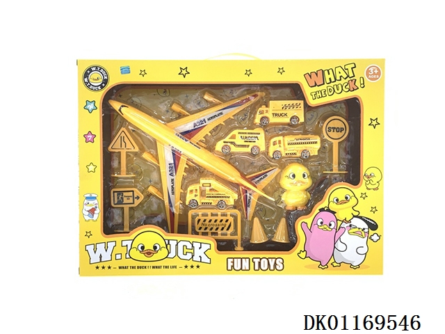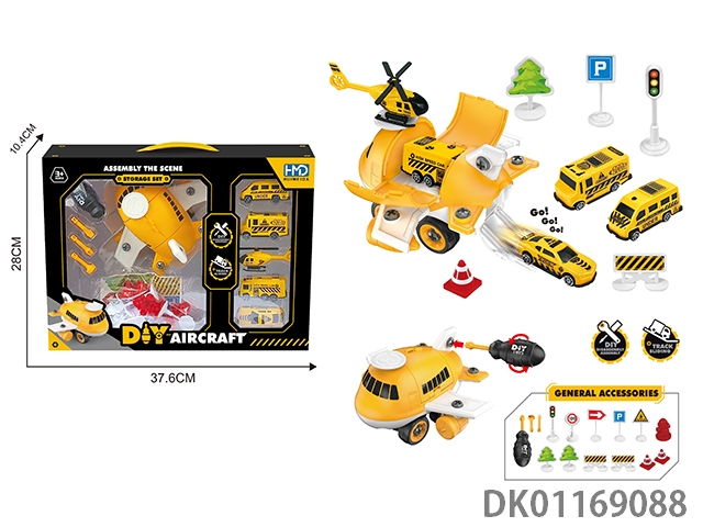 <变形车停车场工程系列>配1只合金飞机1只合金车子