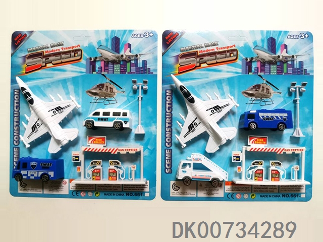 仿真停车场配1只塑料飞机2只车子