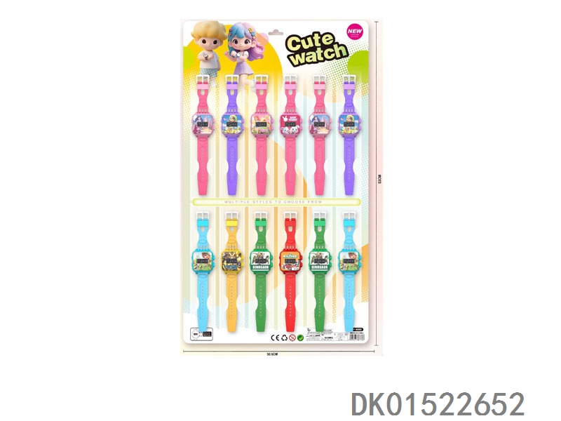 4款电子圆形手表配彩带12只/板