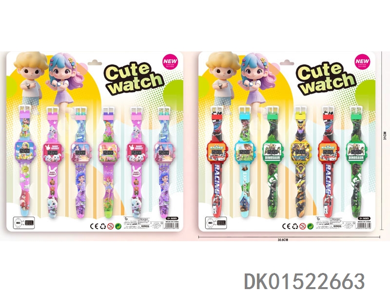 4款电子圆形手表配彩带6只/板