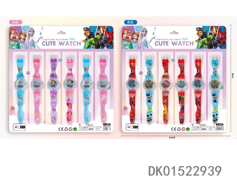 4款翻盖电子圆形手表配彩带图案12只/板