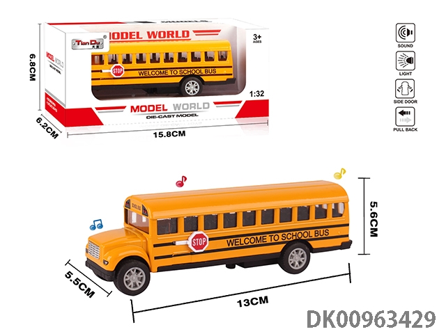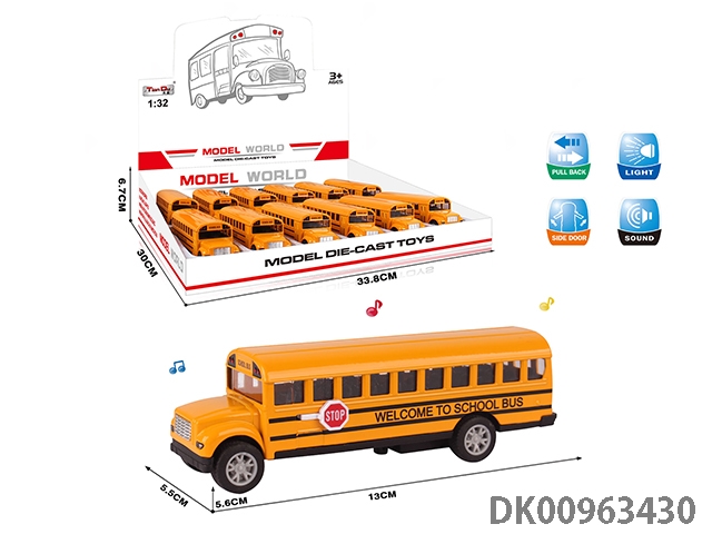 1: 32 Alloy small school bus single door with light music 12pcs/box