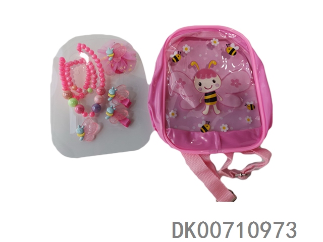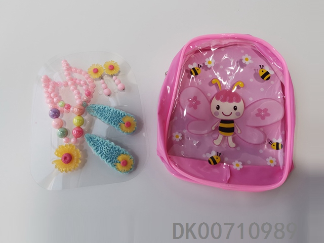Schoolbag jewelry set (necklace and bracelet and hairpin and hair rope) bee