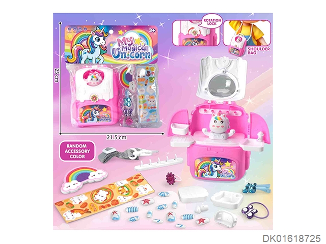 Unicorn play home shoulder backpack and nail art
