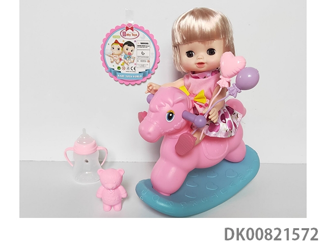 9 Inch full body enamel girl with rocking horse family suit
