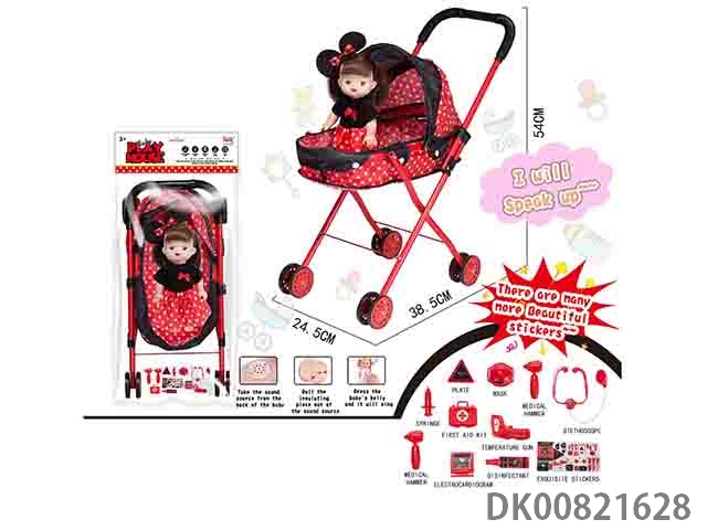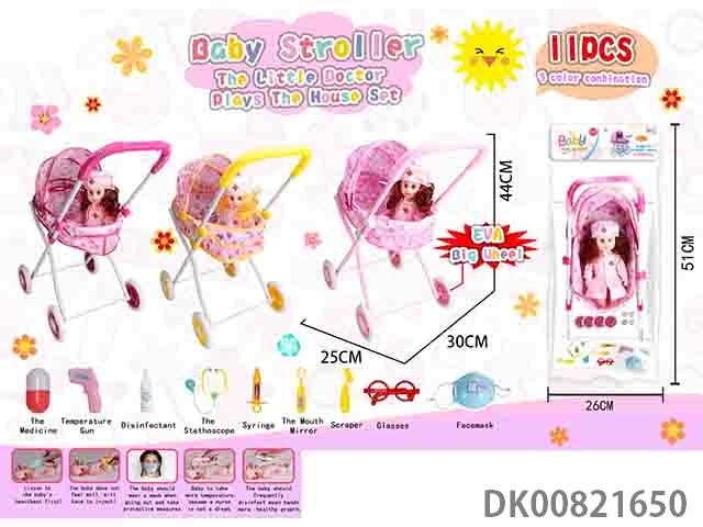 12 Nurse doll and baby sunshade trolley (with 9 pieces of medical supplies) 3 color mixed