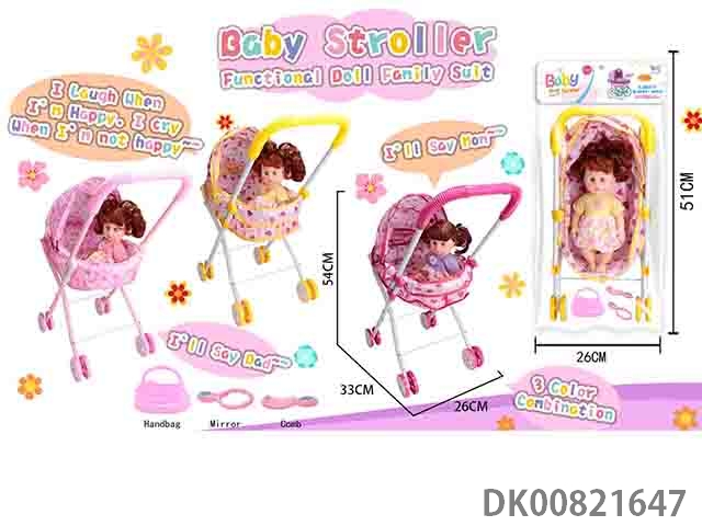 12 Ic doll and baby sunshade stroller (with handbag, mirror and comb) in 3 colors