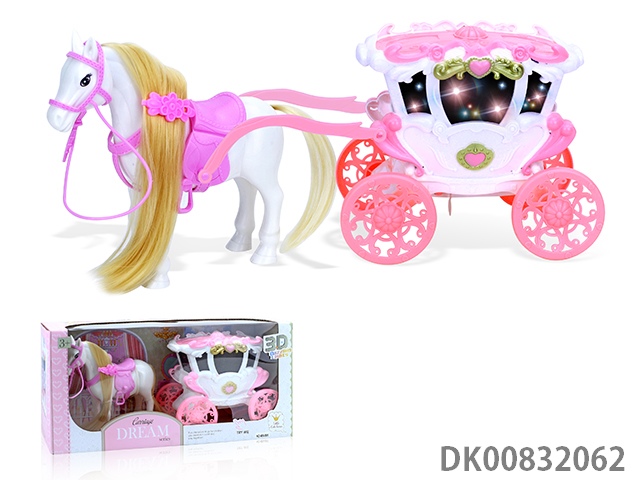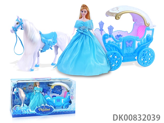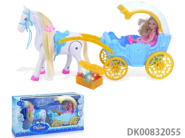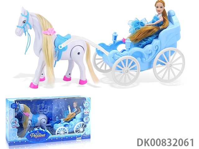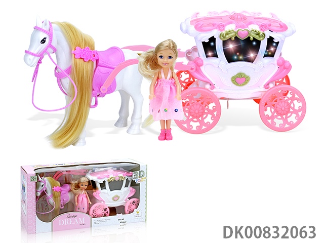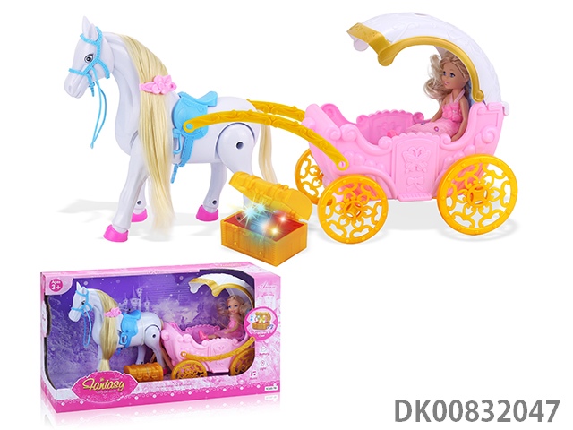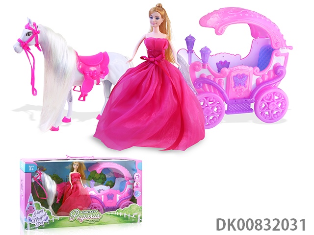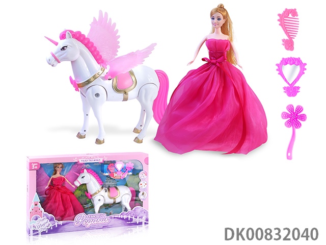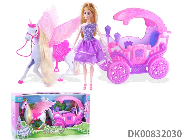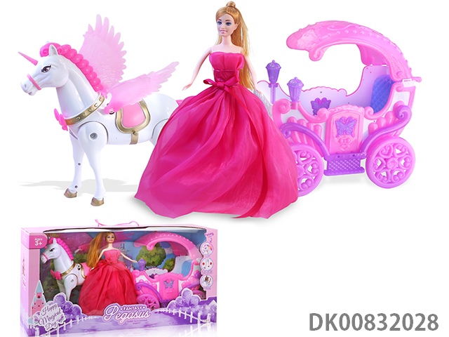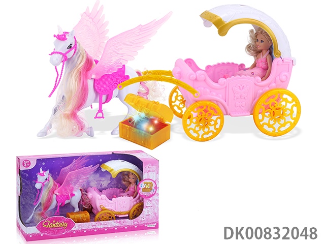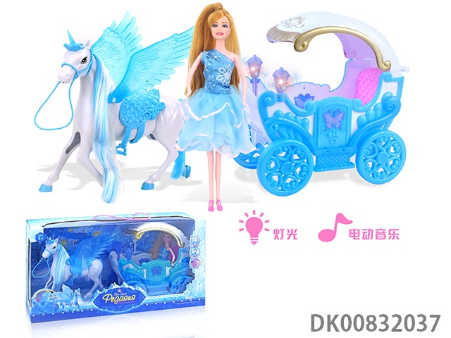 Electric pegasus with music wings swing and evening dress 11.5 inch princess and carriage with light