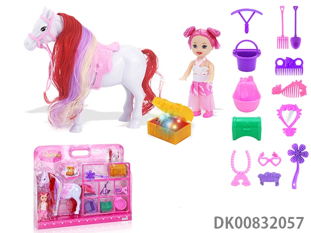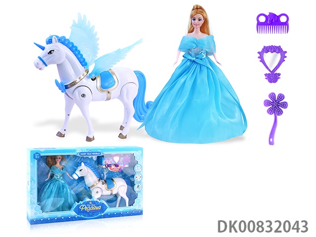 Electric big pegasus (blue) and lights, music and 11.5-inch evening princess and accessories