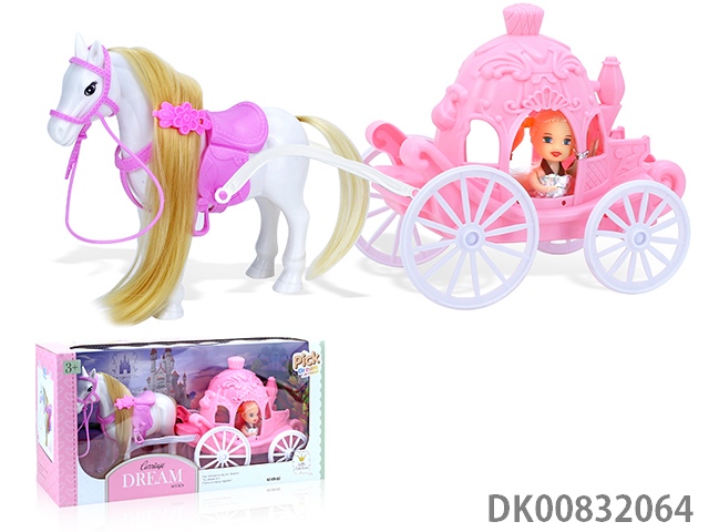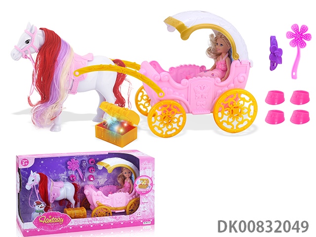 Static big flying horse with free rotating joint wings and 11.5 inch princess and big carriage with light and music