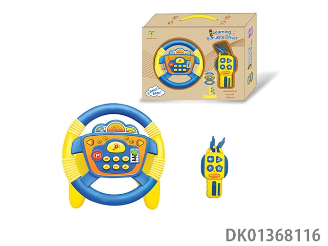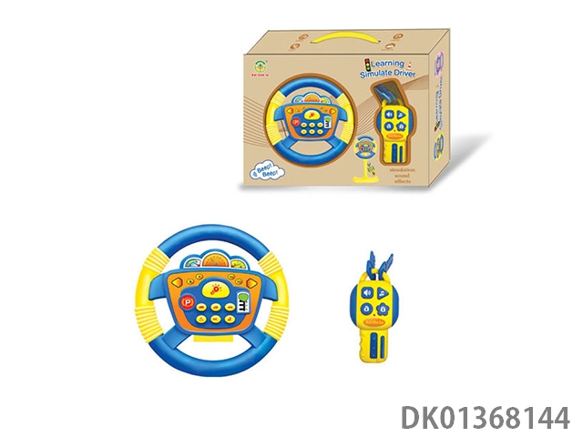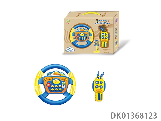 Blue steering wheel with small square bottom, 360 degree rotation with key