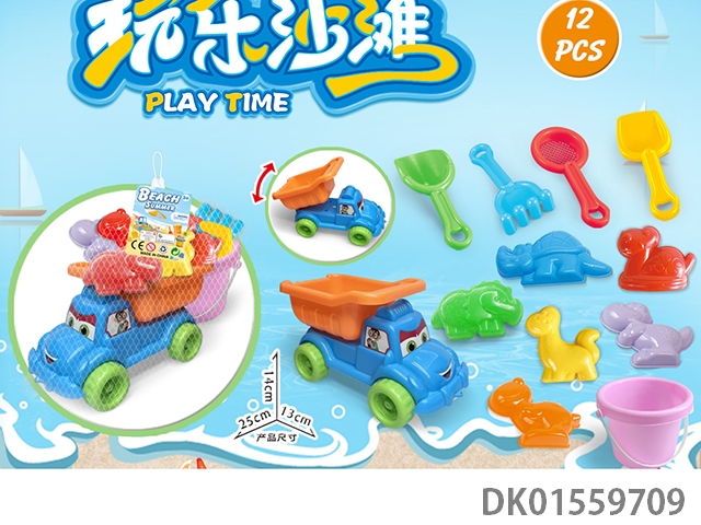 Large truck with dinosaur beach accessories and buckets (12) pcs