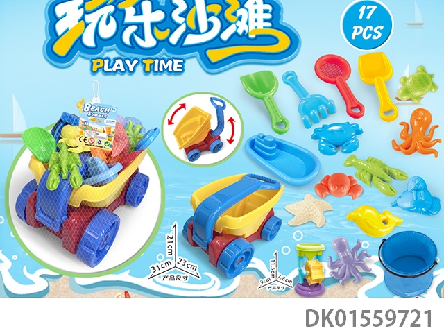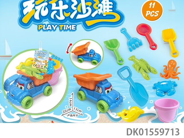 Large truck with beach accessories, folding bucket and hourglass (17) pcs