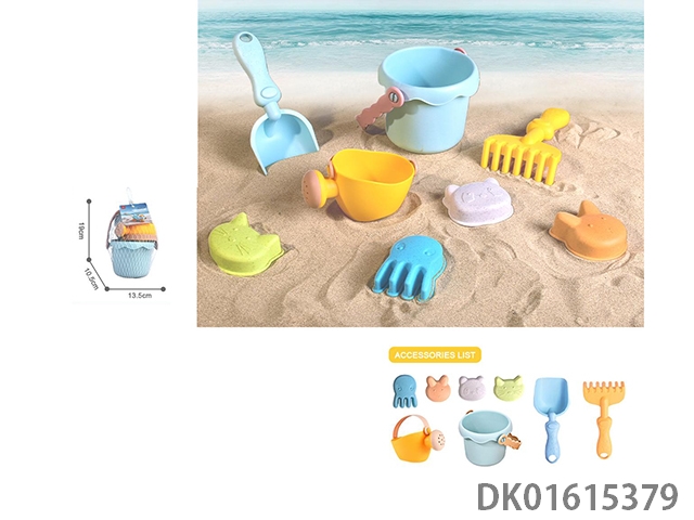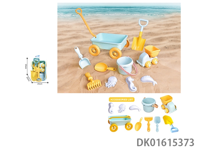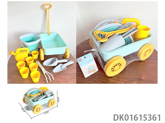 Straw trailer beach folding bucket gardening toy set