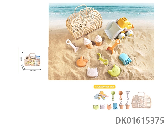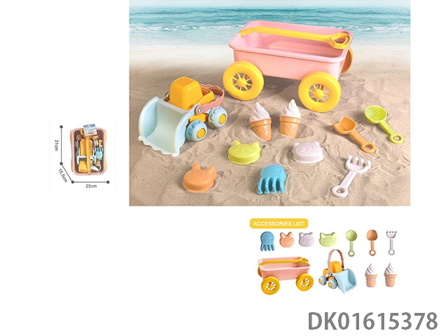 11 piece set of straw trailer bulldozer ice cream sand mold beach toys