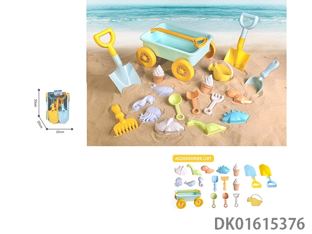18 piece set of straw trailer beach shovel sand model beach toys