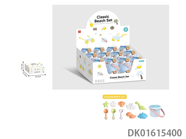 Soft rubber castle bucket, wheat straw, dinosaur sand model, small shovel and rake set, beach toy 11 piece set, 24 pieces/box