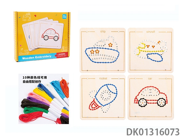 Wooden early education rope embroidery game (transportation)
