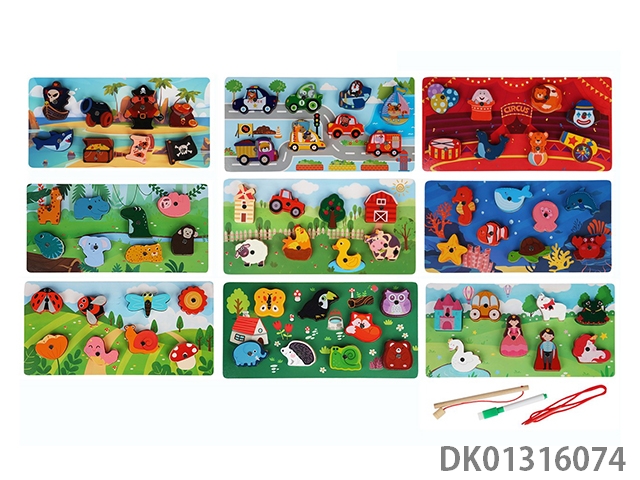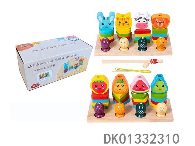 Fishing with wooden fruits and animals